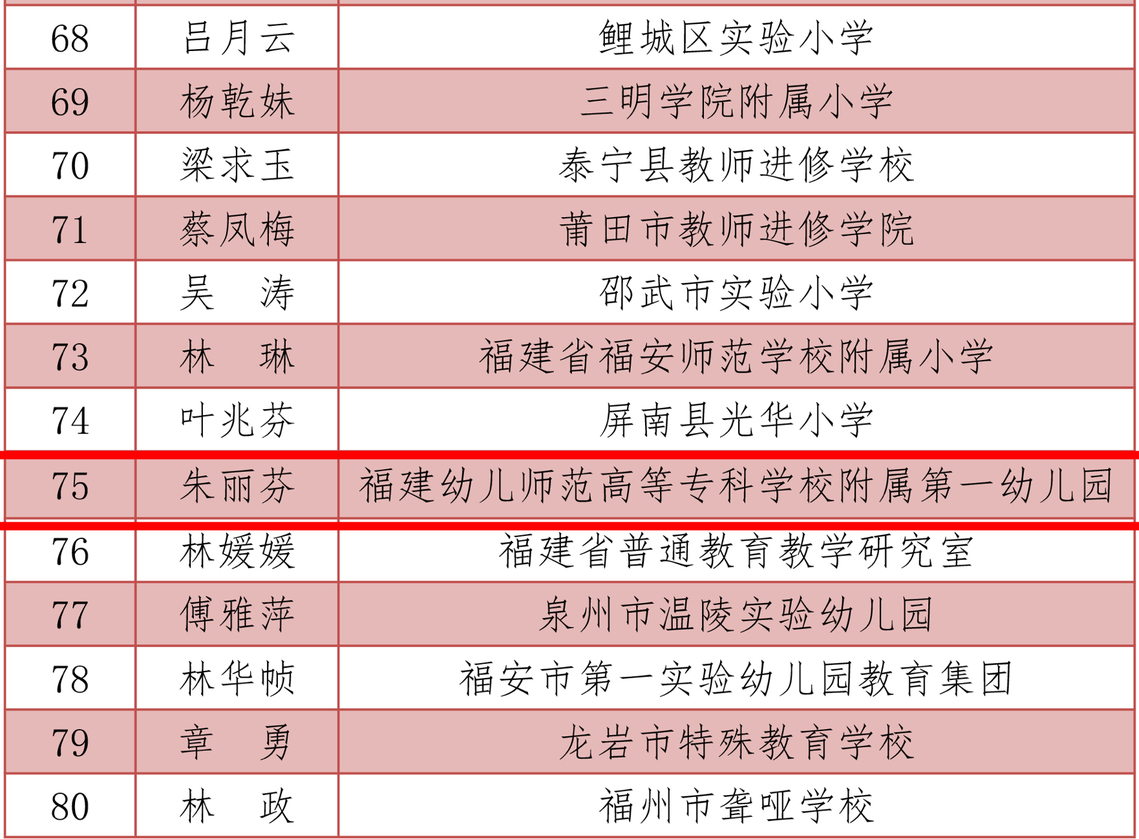 喜報!我校附屬幼兒園朱麗芬老師入選福建省新時代基礎教育名師名校長培養計劃第二批培養對象